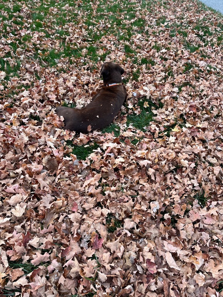 Ernie seems to love the leaves! He always gets to roll around at the end of the walk!