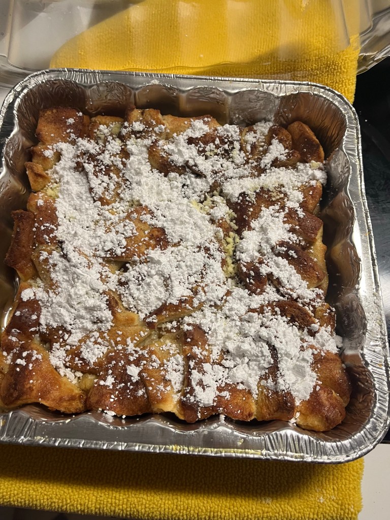 I made mini muffins, french toast casserole, and fruit salad, and was able to pick up their sweet pup from the groomers. It’s fun having a dog in your passenger seat!