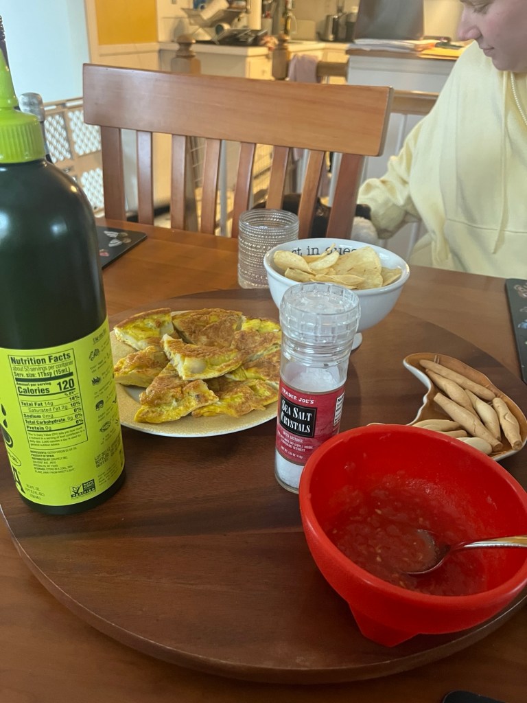 I made a “Spanish lunch” for my former student when I got home. She lived in Spain for a year as a teaching assistant and is subbing now. She was off on this day so it worked out. It was fun!