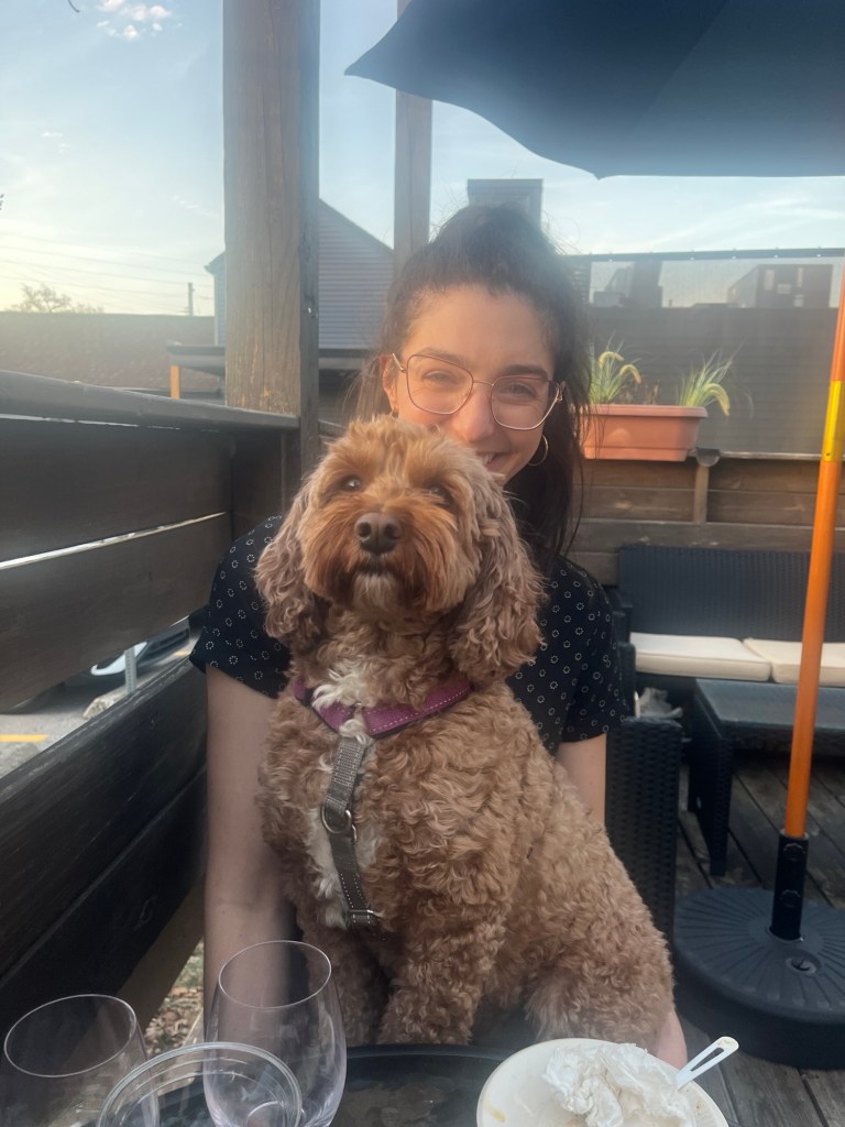 She brought her very well-behaved dog named Banana who is a big cavapoo.