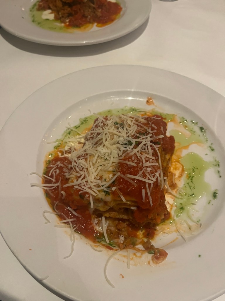cup of soup with puff pastry – I had tomato and she had lobster bisque and they have fries that taste like bougie McDonald’s fries.