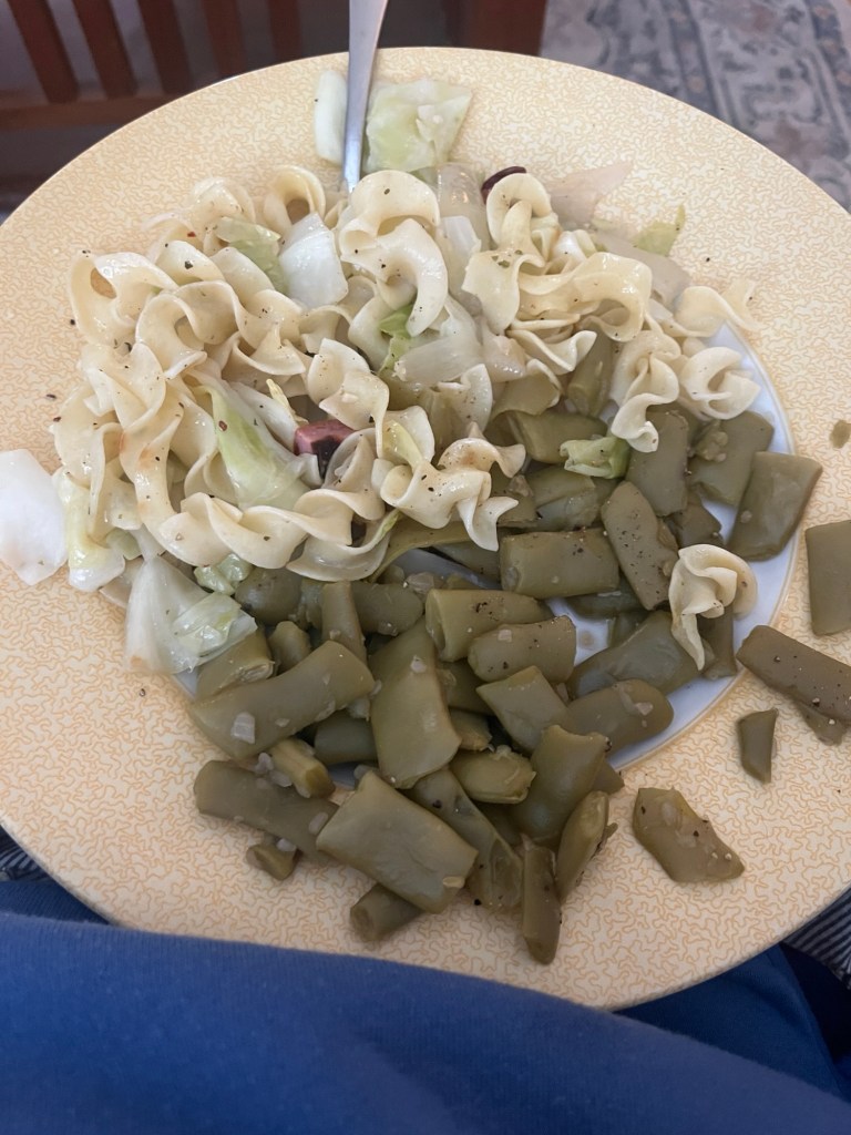 I made Polish Haluski and Tom really liked it. It’s cabbage and onion with egg noodles. I added turkey sausage.