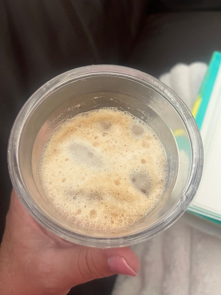 I made a really good iced coffee. I put 1 T. sugar in a mason jar with 2 t. instant coffee granules and 1/4 cup cold water. Shake vigorously for about 1 minute. Pour over ice and then add 1/4 cup cold water and milk to the top. I used a bit of creamer with the milk. It was really good!