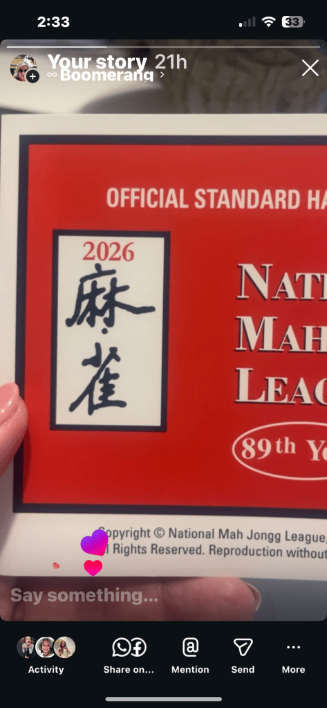 I got my 2026 mah jong card in the mail! Not everyone has one yet, so some will still use the 2025 for a bit.