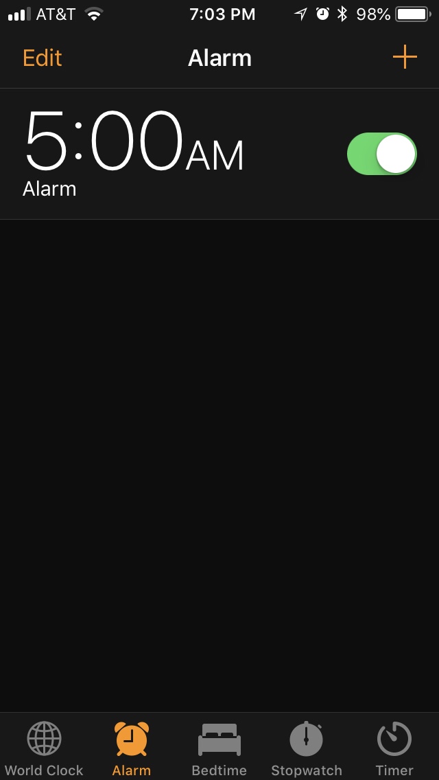 5:00 Alarm – I usually get up right when my alarm goes off. I make one cup of coffee and have my quiet time. I read Everyday Holy by Melanie Shankle right now and then I read some blogs. I finish writing my blog entry the night before and set it to publish at 4:00 am but I may add it to a link up in the morning.