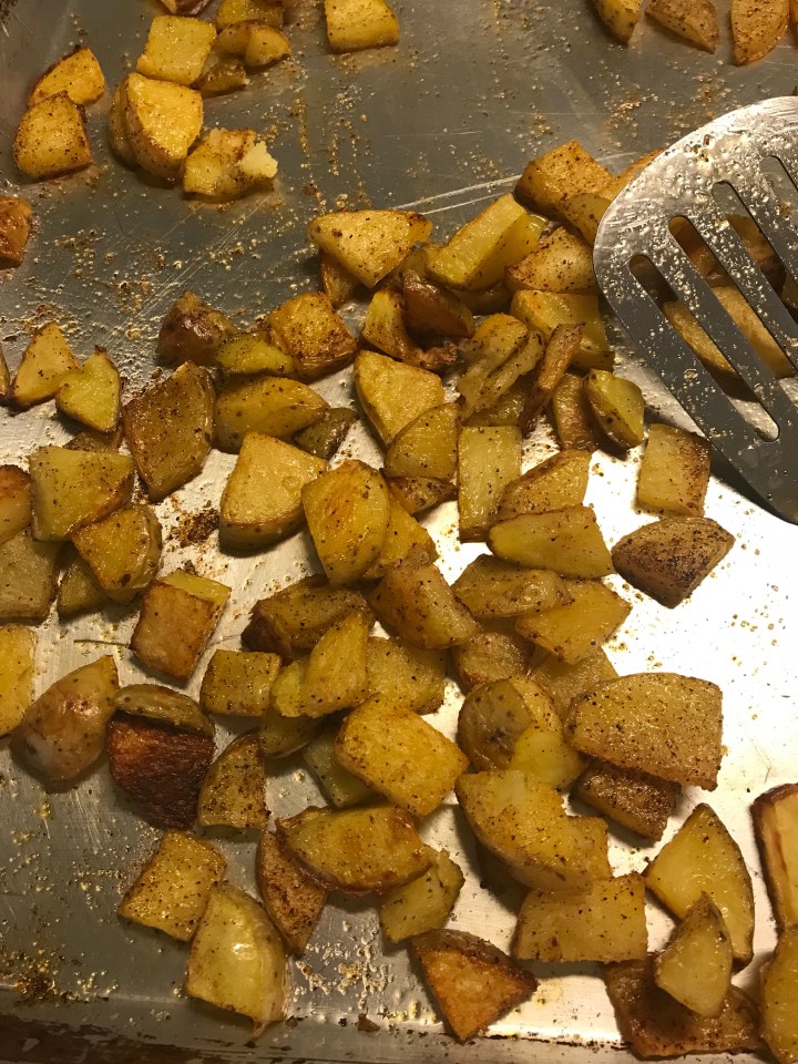 Because we are still in school and this was a week night for us, we didn’t socialize Monday evening. I made oven roasted potatoes with cajun seasoning.