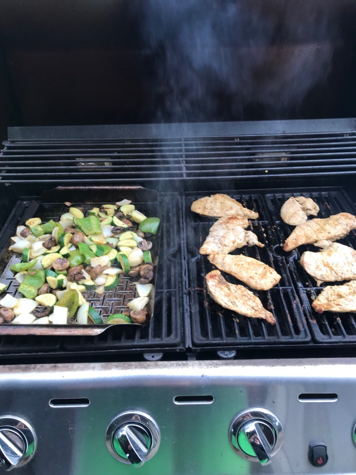 I cooked the Mojito Lime Chicken I marinated and used my grill pan for zucchini, mushrooms, onions, and green peppers. So, just the four of us enjoyed a nice meal.