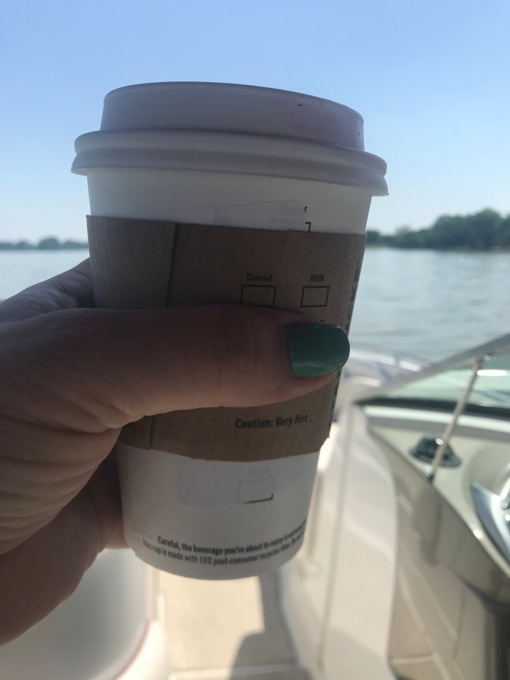 The boys wanted to stay home Saturday and we had plans for a movie later that afternoon so hub, Ernie, and I decided to try the boat for just a bit around 11 am. I took Shannon’s advice and got Ernie a puppy whip from Starbuck’s when I was getting us sandwiches and a tall skinny vanilla latte for me. My husband doesn’t drink coffee or cocktails with me. He mainly drinks his favorite soft drink called Ale 8 One.