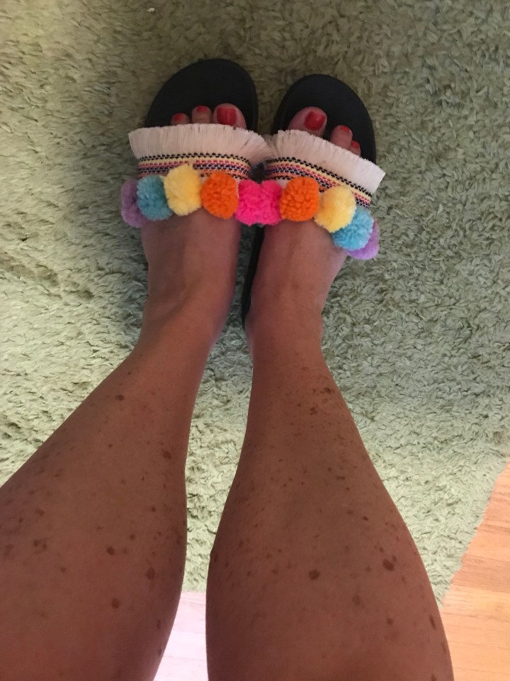 When I got home the mail had come! Why do I love the mail arrival in the summer so much? These are the $11 American Eagle slides I ordered. I think I could have gone up a size but I’m hoping the band across the foot stretches a bit. My husband asked me what in the world I was wearing on my feet. I don’t think he is a fan!