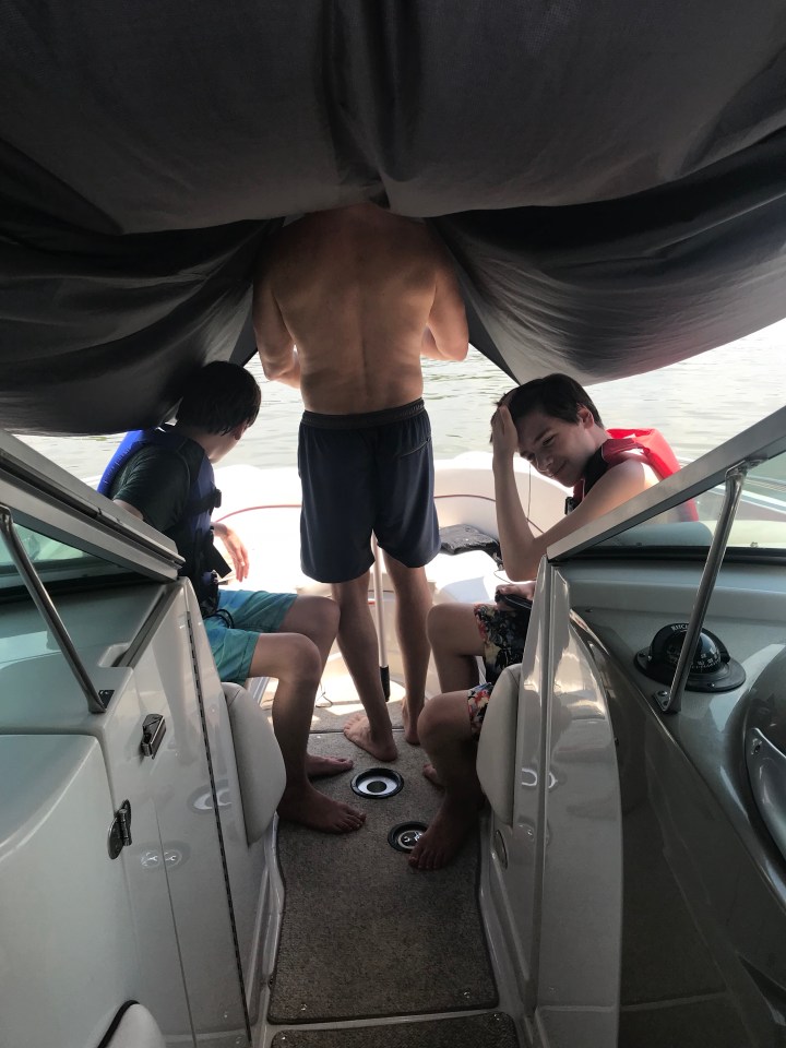 For our Father’s Day, the boys wanted to make their Dad happy by boating! Oh my gosh, I was such a baby and could hardly handle the heat! We only lasted a little over an hour. My husband made a canopy for more shade. The air felt like you were stuck in someone’s armpit. It was bad.