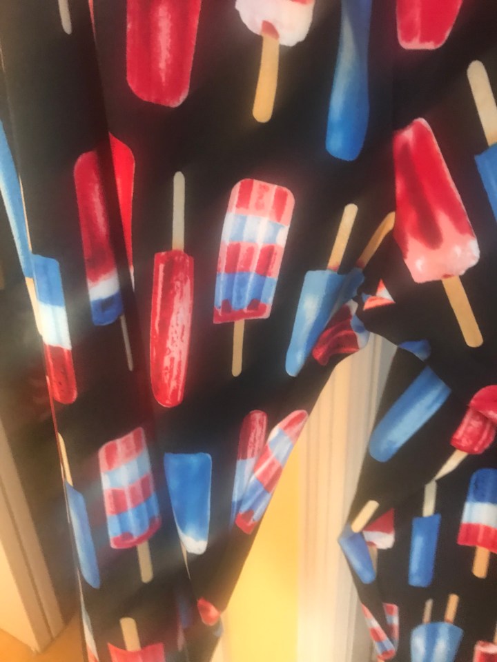 I could not leave these leggings (below) in the store. They were $5.94 (?) and they felt every bit as soft as LulaRoe leggings and they are capri! Well, they aren’t capri on me – they come to my ankles. It will probably be too hot to wear these on the 4th of July but my school has spirit weeks several times a year and patriotic theme is very popular. I wore these on a rainy morning on the patio already. So soft!