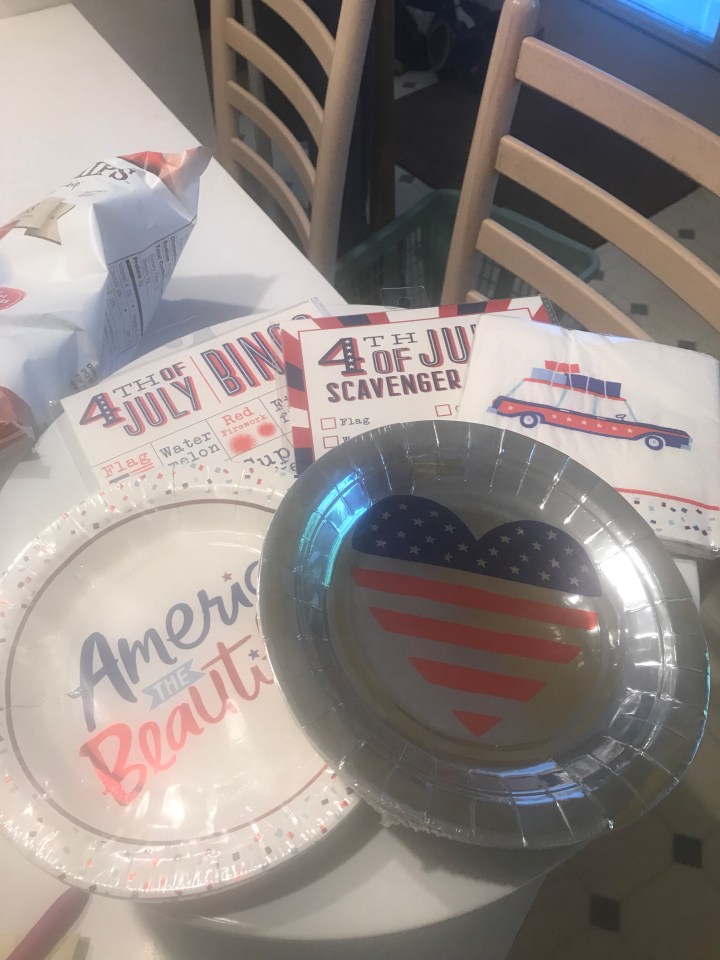 Gather some fun plates and napkins – these are from the dollar section of Target. I also picked up a scavenger hunt card set and a Bingo card set. You could also make your own. I may give these cards to my teen nieces to see if they could play with friends and Pia! Could be fun!
