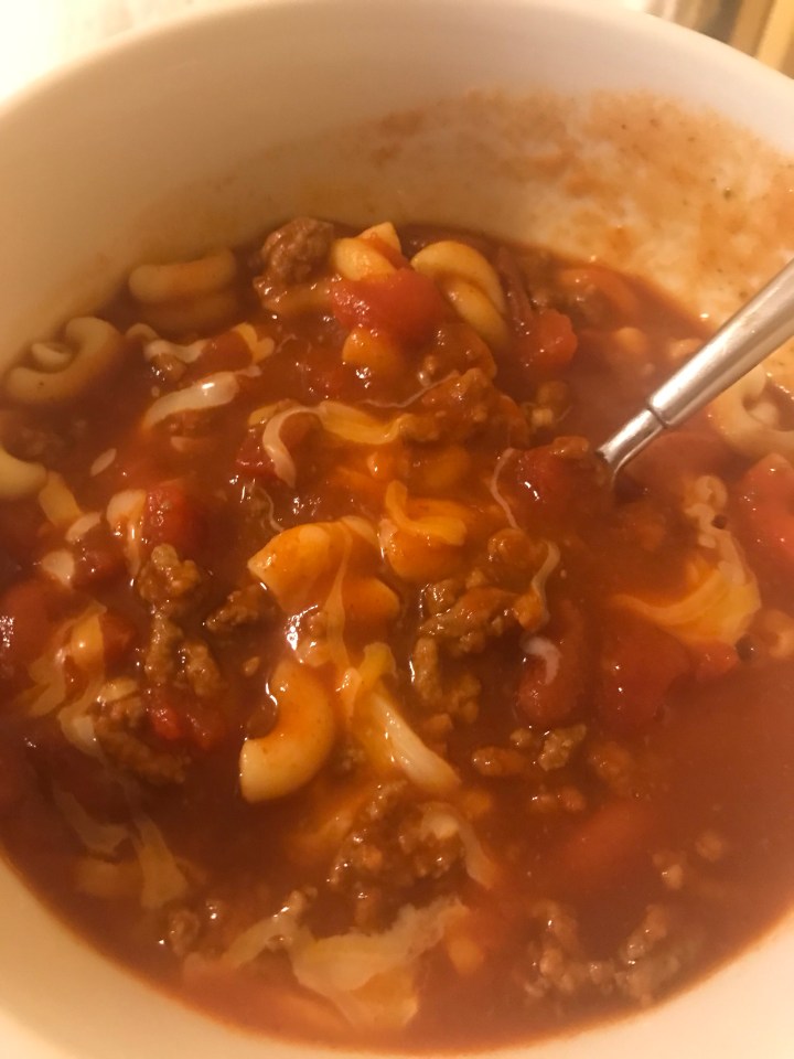 I use the recipe on the back of the Red Gold brand tomato juice can but I add one of the chili seasoning envelopes instead of individual spices and I add a dash of cinnamon and sugar. We serve with elbow macaroni noodles and Fritos and cheese. One of my sons wants chili all the time!