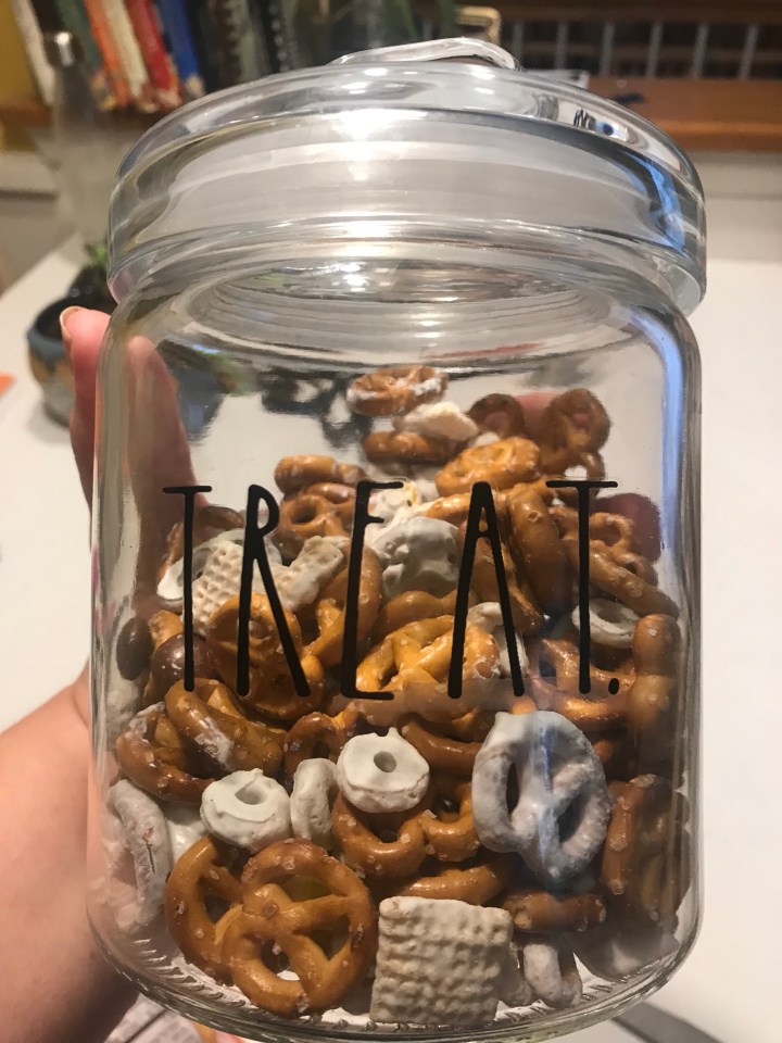 Finally, I added one Rae Dunn piece from Kirkland’s and I think I will use it all year as it simple says “treats”.