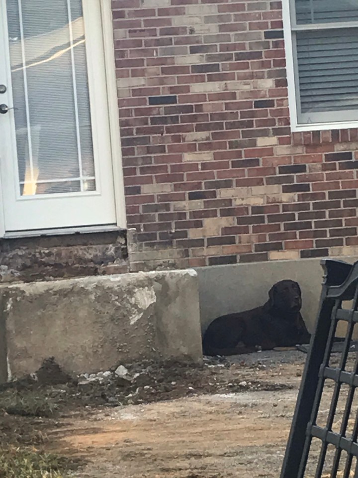 We have lived in our home for 18.5 years. It is a 60s ranch and I love it, but it needed some work and still needs some work. We have replaced doors, windows, built a free standing carriage house garage with patio off to the side, refinished the basement complete with drywalling over the paneling, added a basement bathroom, built a fence, redone the roof. Whew! But, our big goal has always been to build an addition on the back. This will involve a master bedroom with bigger closets, master bath, new hall bath, mudroom, and new kitchen. I’m really scared because I don’t like disarray and I’m worried about how long it will take and I am also conservative about the expenses. We got started with having our back concrete steps removed and our old septic tank that is no longer used dug out. My sweet dog missed his back porch so he had to lay next to where it was. I thought it was funny and sent it to my hub with a caption from our dog saying, “Where’s my back porch, daddy?”
