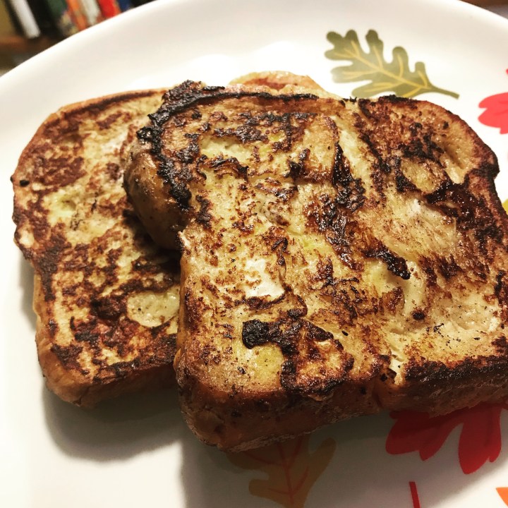 Saturday morning was lazy and included french toast for my boys. I have perfected it. You buy the brioche bread from Trader Joe’s and it turns out great!
