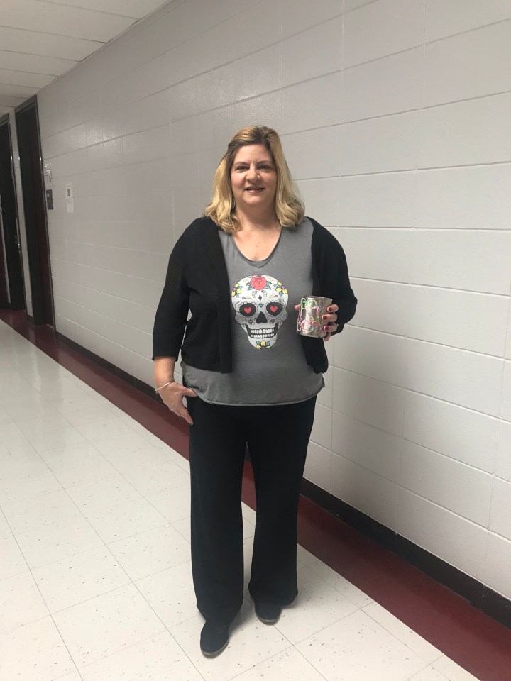 Here is my Spanish teacher Day of the Dead shirt for school.