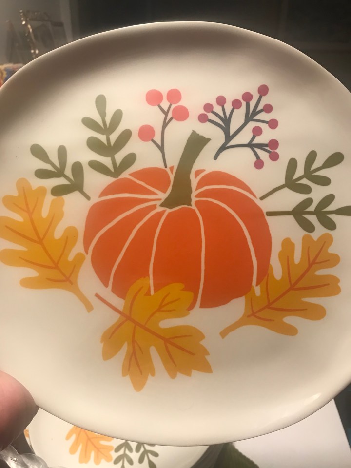 These Target plates from last year make me so happy. I bought 8 of them and just love them. Four are like this and four just have leaves.