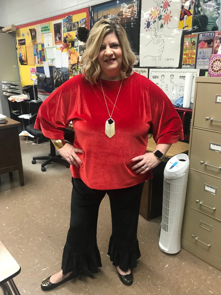 Monday’s outfit: Matilda Jane regular black pants, burgundy velvet top from ON (picked it up in a second color and sized down), Kendra Scott necklace, Lotta clogs.