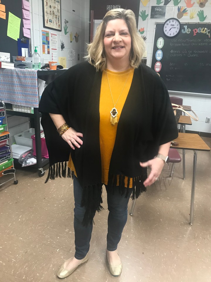 Friday’s outfit doesn’t look good in my opinion: Vigoss jeans, Tieks gold flats, ON mustard shirt, black Target shawl.