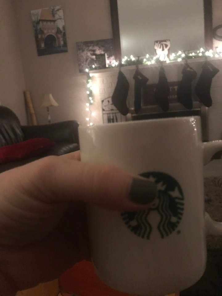 Sunday morning was the first coffee with the tree up.  I did some meal prep for the week, my mom and I went to Costco, we went to the hospital.  I left my mom there while I did lunch for my boys, they had a friend over, I went back to the hospital with treats for my parents, took friend home, then made dinner.  Whew!