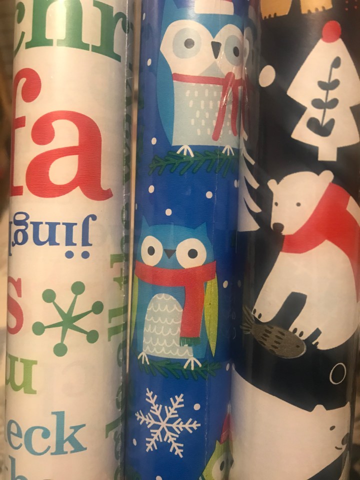 I bought 3 different styles of wrapping paper. One will be for immediate family gifts, one for one side of the family, and the other for the other side of the family. I try to make sure they are in the same color family so they look good under the tree, but that’s not really that important to me. I would rather the paper be cute.