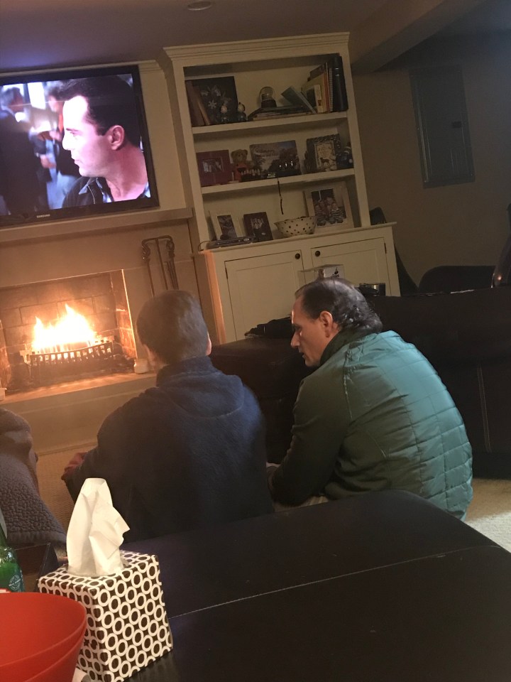 I took a picture of my husband and one son stretching in front of the fire.  My husband will be off until January 2 after working just Wednesday and Thursday.