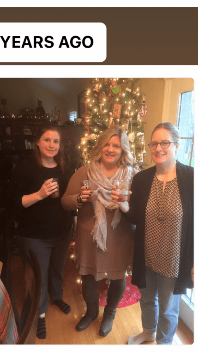 This photo popped up on Facebook from Christmas at my parents three years ago.  These two are a couple of strong and amazing women.  They are 40 and 43 and I love them so much.  We cried together but we also laughed together and we have talked every day since the funeral.  So, this photo is bittersweet because we had the whole family together and healthy, but it is also a happy photo to me because of the love I feel for them.