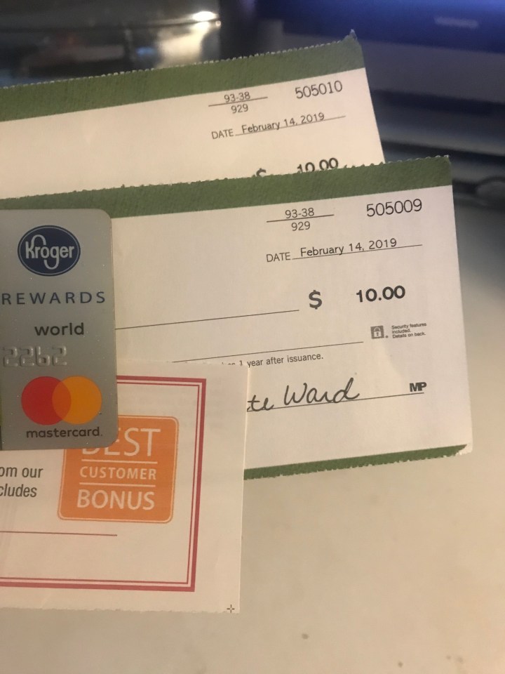 -I meal plan and use up the food we have. I use coupons and the rewards checks that come in the mail. I use online shopping to stick to my list and avoid temptations.