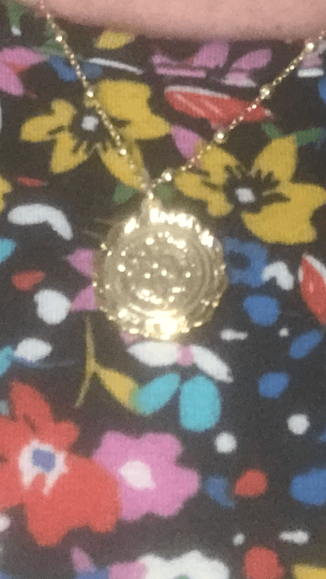 My third favorite is my second Mother’s Day gift from my hub that came late (he also got me a new coffee maker).  It is a replica of a Spanish coin from a shipwreck from the jewelry company of Kristin Cavallari, Uncommon James.  This isn’t a great photo but I’m loving wearing it with silver necklace with my Dad’s birthdate on it that I showed you a few months ago.  I love this style necklace and the fact that I’m a Spanish teacher makes it a cool piece for me.  Don’t worry – I didn’t have my husband pay full price – I sent him a coupon code!  Yes!
