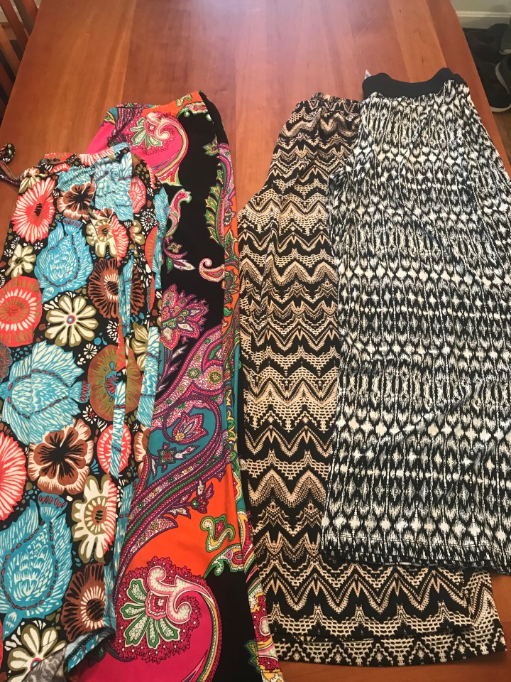 I want to hear from you!  What do you think about patterned palazzo pants and skirts with a black top and black shoes?  Could this work for your lifestyle?