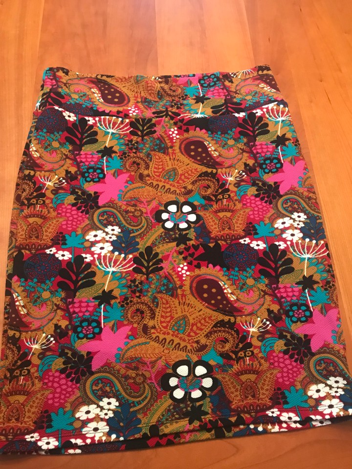 Here’s an example of what I’m talking about.  This is the LulaRoe Cassie skirt.  It doesn’t wrinkle and no ironing required.