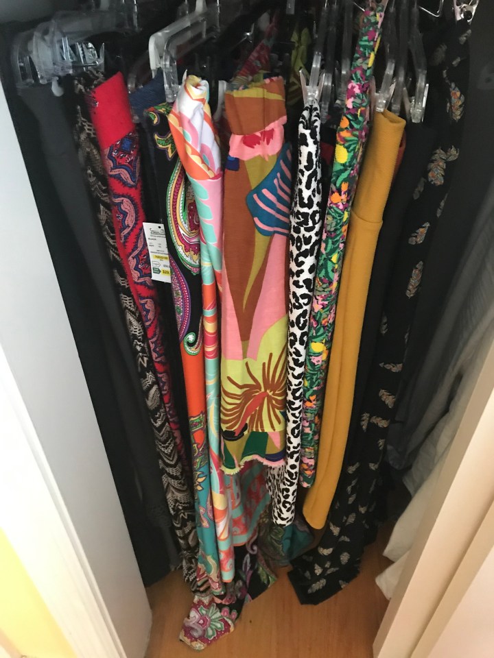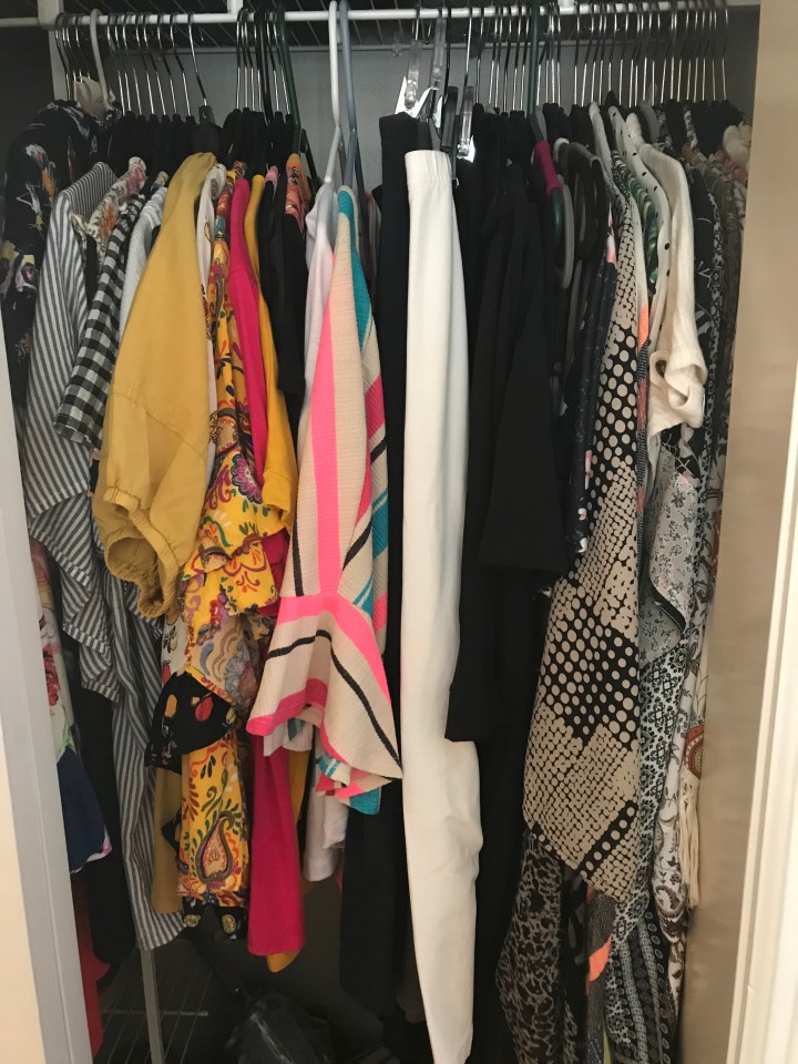 First, my fun colors and patterns in my closet.  I’m just not a neutral girl.  This makes me happy.  I’m actually enjoying dressing again!