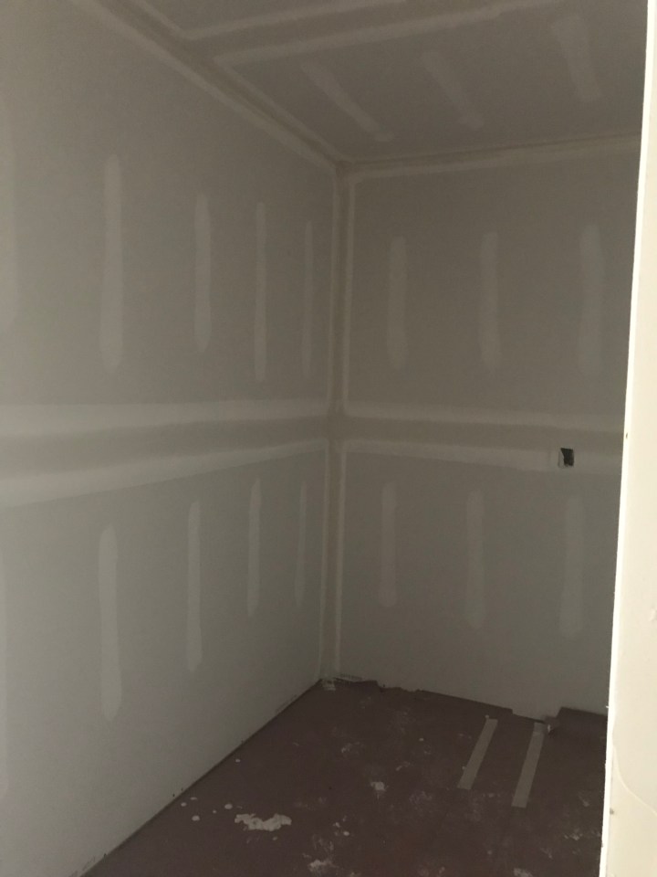 Drywall started on our project this week and this will be my closet!  Just mine!  I have never had a walk in closet!  I get to help figure out how to configure the rods and shelving.  I am so excited about this.  My clothes are seriously unorganized right now.