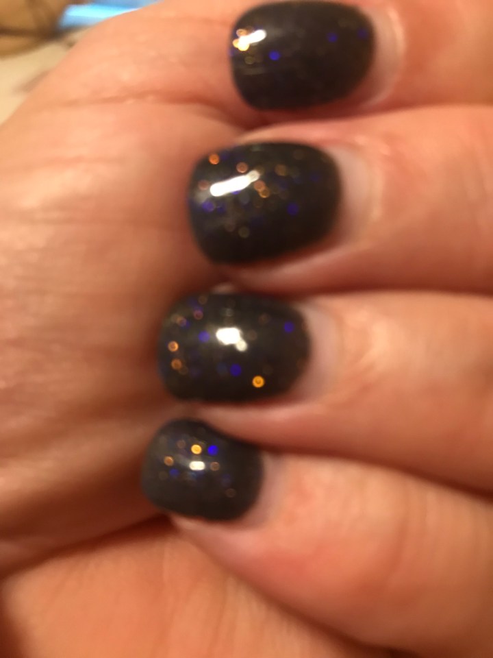 For those of you following along on my dip nail journey – ha – this is four weeks tomorrow!  Sorry for the poor photo quality but you can see the regrowth at the cuticle.  I got tired of my first dip which was pink/salmon very quickly but as I am definitely more of a dark color person, this has not gotten old for me.  I plan to go back to get them redone either tomorrow or early next week.  What color should I do next?  I am thinking a wine/burgundy color – too soon for that?