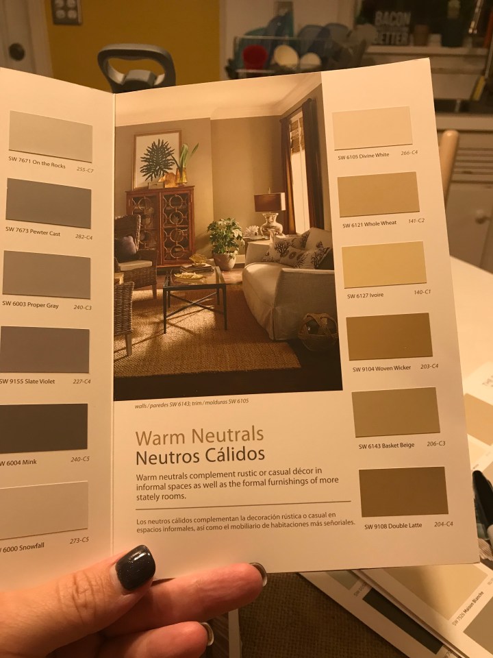 We did some remodeling on bathrooms a few years ago and the painted the master bedroom for flow. I had the hardest time getting the perfect grey we kept getting bluish grey. Finally I talked to one of the girls that help with colors and she recommended the perfect one, so don’t be afraid to ask for help. How about a taupe color? They can have a grayish cast.