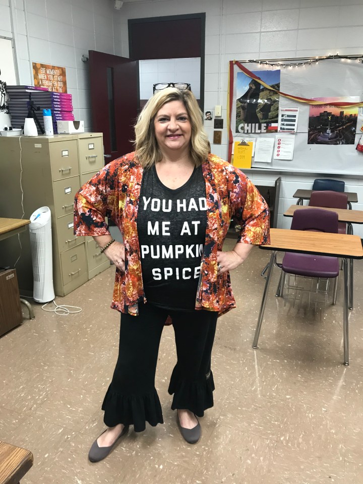 And, here is a end of the week outfit – Matilda Jane pants, pumpkin spice graphic tee,  and a LulaRoe consignment kimono with my Rothys.  I start wearing flats again in October and wear them when I can until April or May!  I really do love my Rothys and they look brand new.  I wish I had not washed them because I feel that they shrank just a bit in the washer.  But, they are not uncomfortable.  I love the color I chose – mink.  It is a brownish with purple undertones.  Anyone else out there have Rothys?  They have some new styles but I cannot justify the cost of another pair.