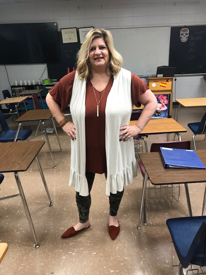 I just think this rust sweater from last year Anthro is too long.  I love my vest, of course, love my Wild Fable from Target leggings, and love my new rust mules.  Maybe I will look for a long sleeved rust tunic?  It was really too cold for short sleeves, to be honest.