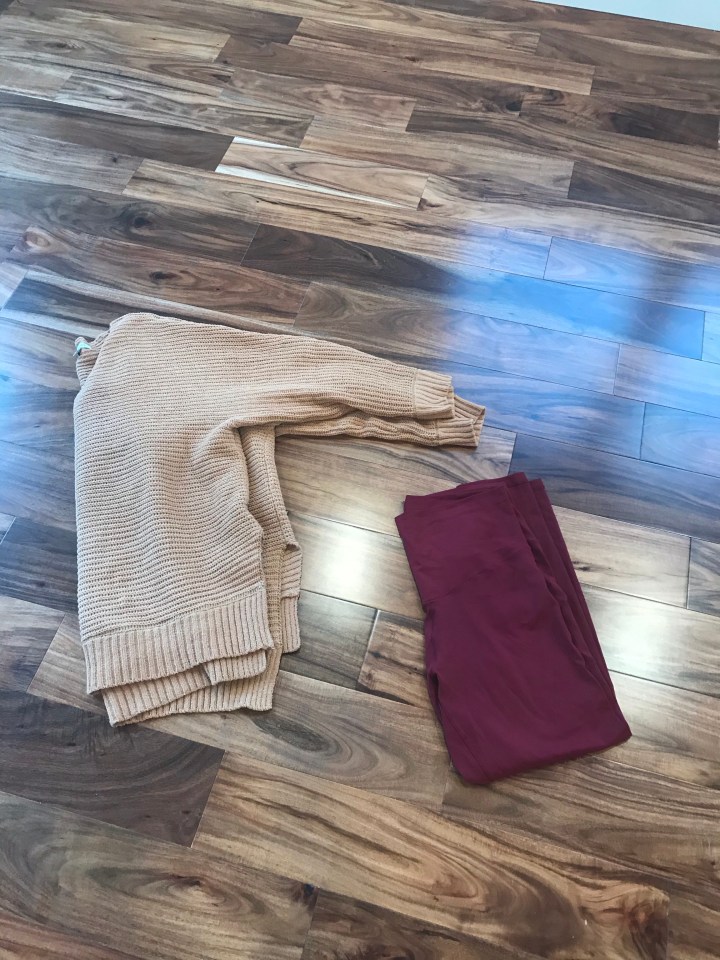 My in-laws gave me some money so I took myself to the dreaded mall with the Aerie next to the American Eagle.  Basically the store was 50% off of everything.  I found this super soft v neck and sized down.  And, these leggings are the best things I have every put on my body.  They are the 7/8 and now I’m wondering why I have settled for too long leggings for my 5’4 frame.  Here is the sweater and here are the leggings.  I cannot recommend these items enough!