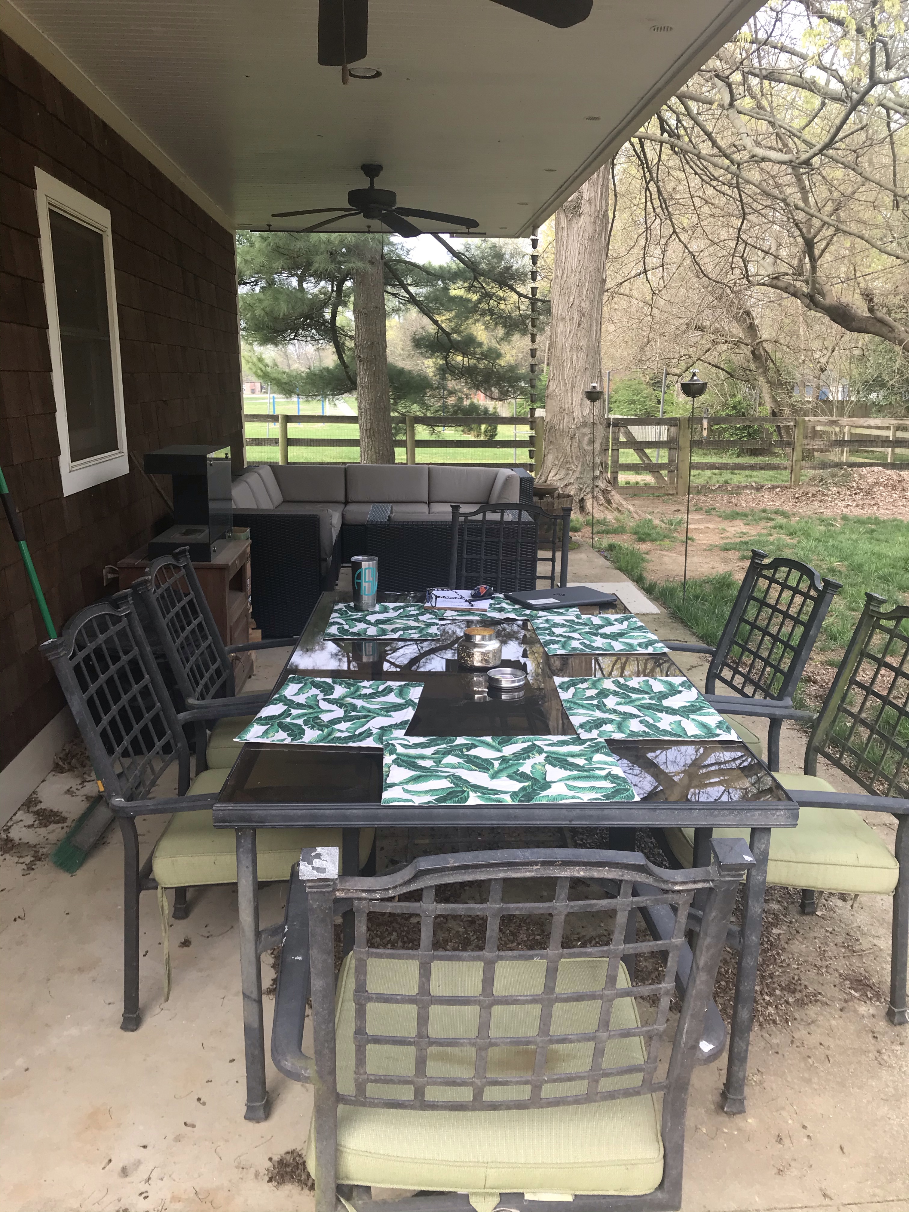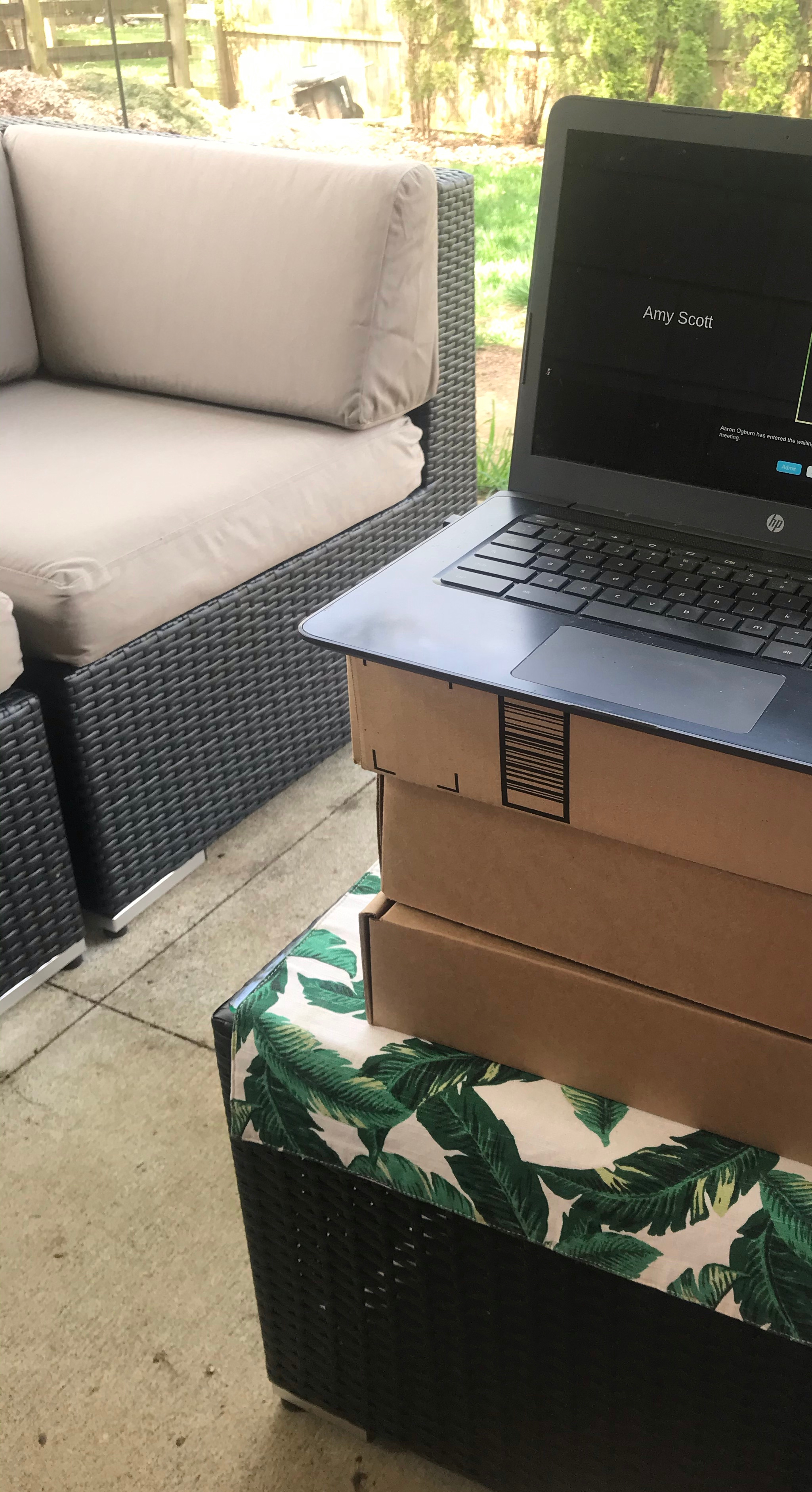 So, Monday I had 3 Zoom/virtual meetings. The weather was gorgeous so I set up shop outside. The meetings were at 9, 11, and 1. At the same time, I had 4 technicians in and out of the house changing out our heat pump. They were there from 7-3. It was a pretty crazy day and I am glad for the mute button on Zoom. I figured it would be less noisy outside and I was right.
