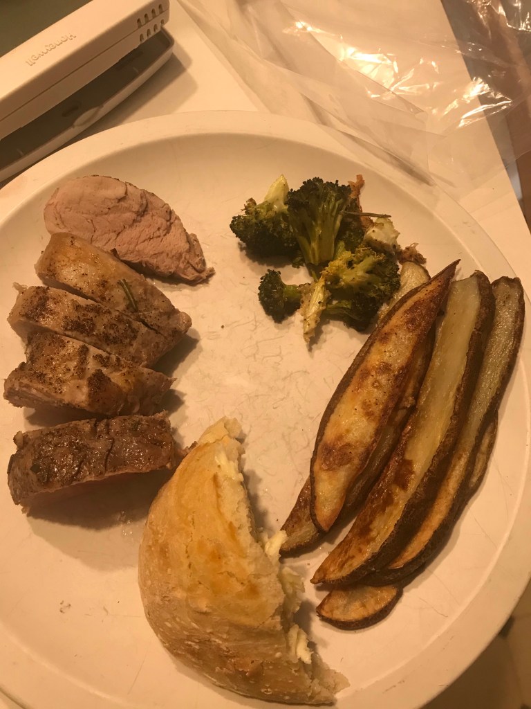 My Dinnerly box arrived and I made the roasted broccoli, rosemary pork tenderloin, and potato wedges and we had the homemade bread.