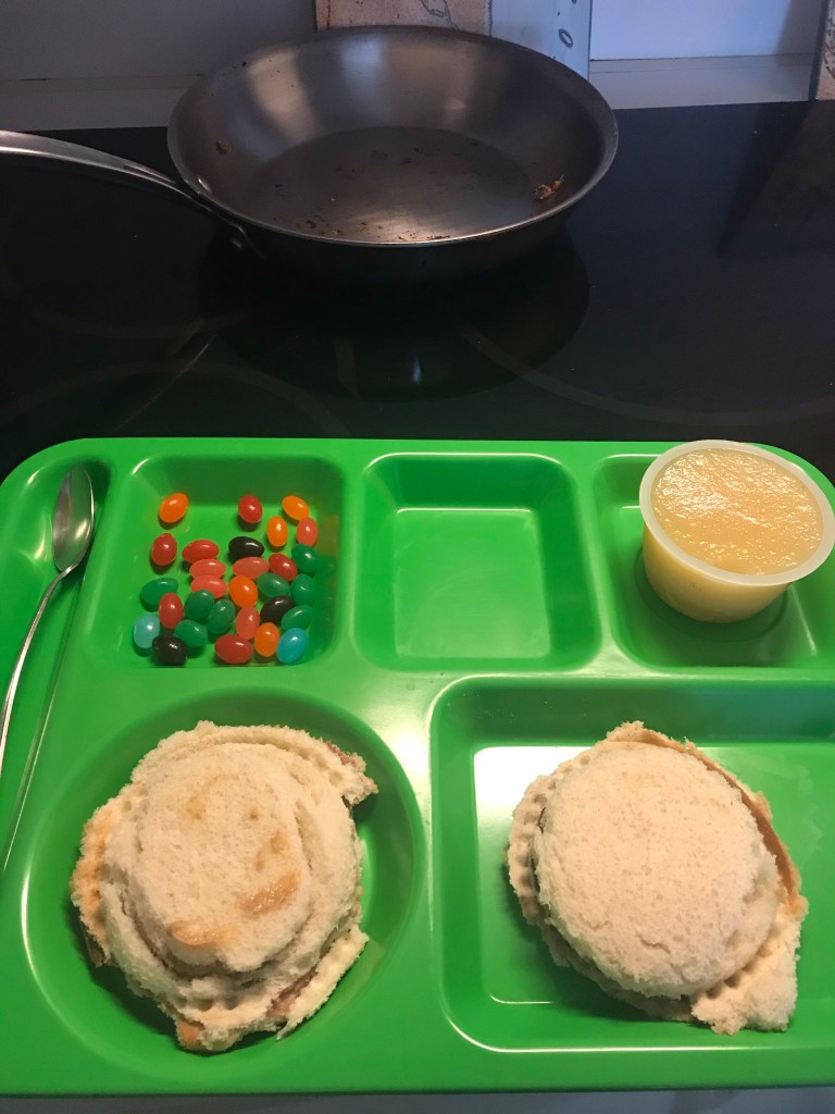 I made the boys a lunch on a cafeteria tray on Wednesday to make them laugh.