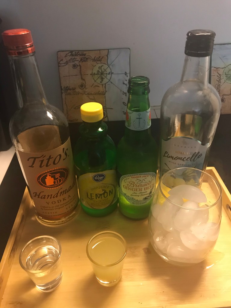 Enter the limoncello mule. I was browsing Pinterest and saw this idea. I have a very old bottle of limoncello that my sister gave me for my birthday and I had a Trader Joe’s ginger beer that is quite old. Did you know that ginger beer isn’t alcoholic?