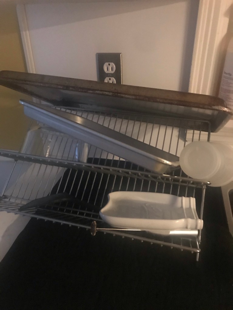 I head into the kitchen and deal with any dishes from the night before that need to be put away. I turn on the news while I am doing this.
