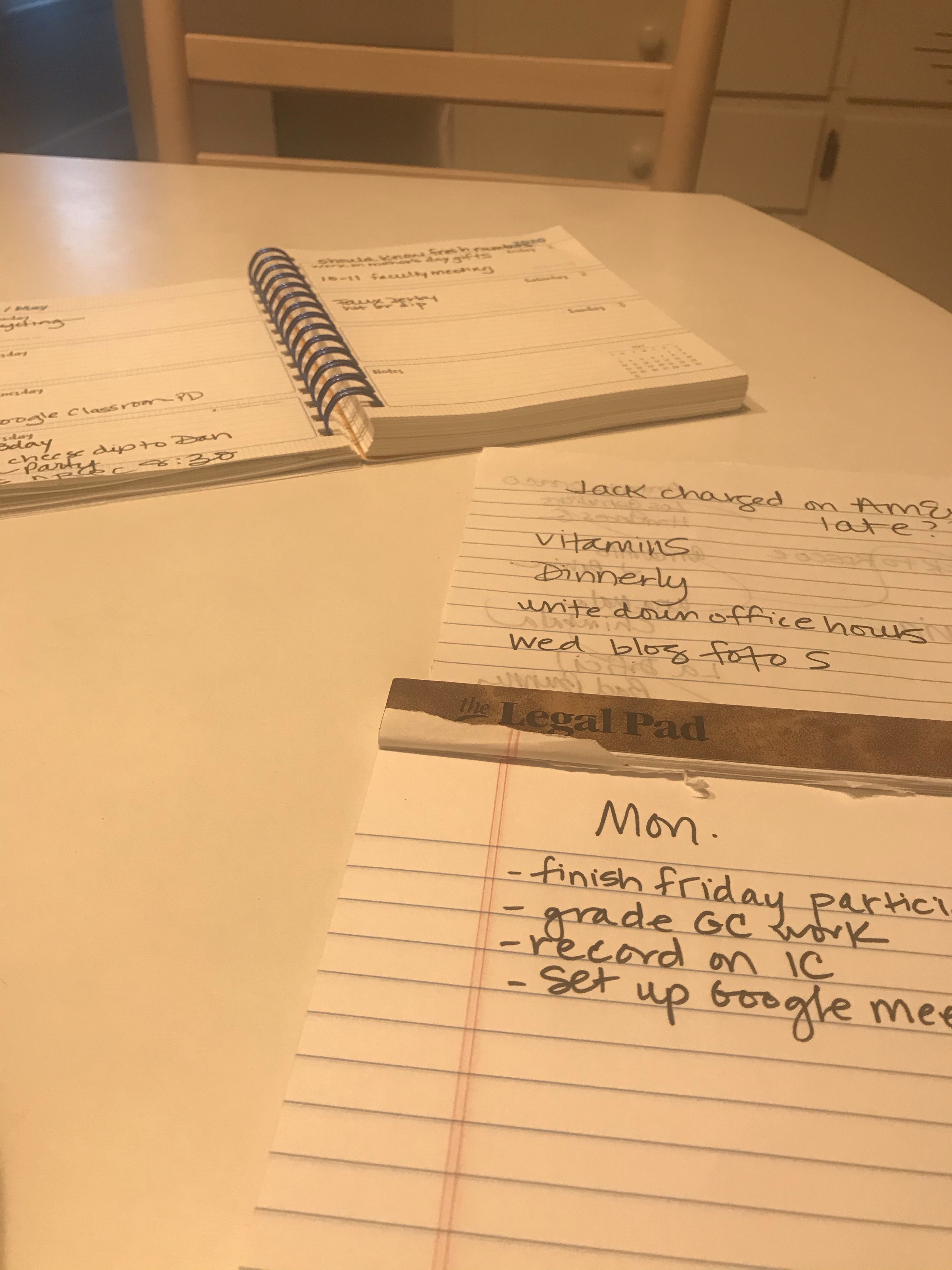 I do a bit of list making/calendar perusing upstairs in the kitchen while I watch some news and eat breakfast.