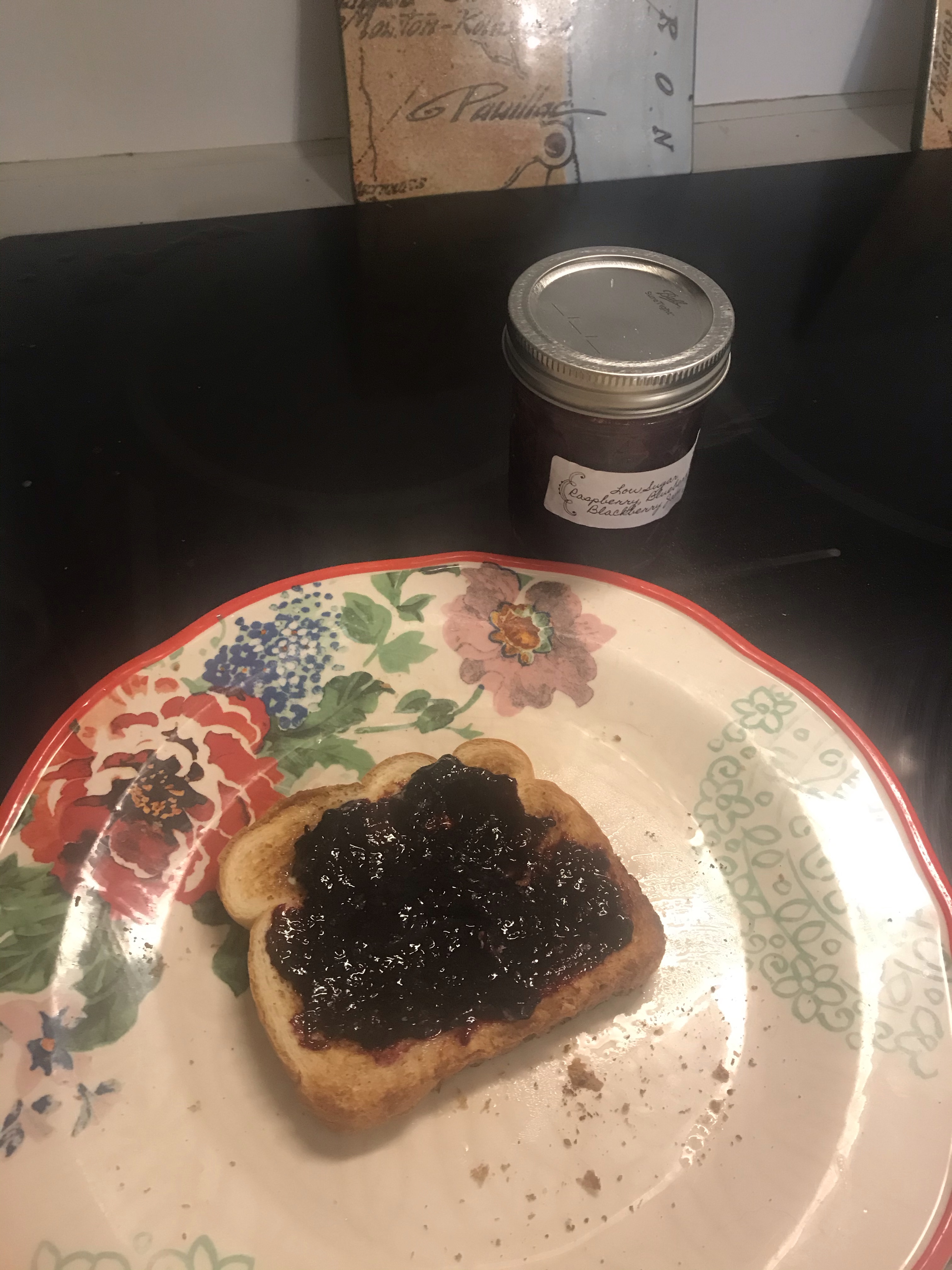 A mom of a student gave me a jar of jam that I did not open until Quarantine. It is low sugar mixed berry and it is delicious.