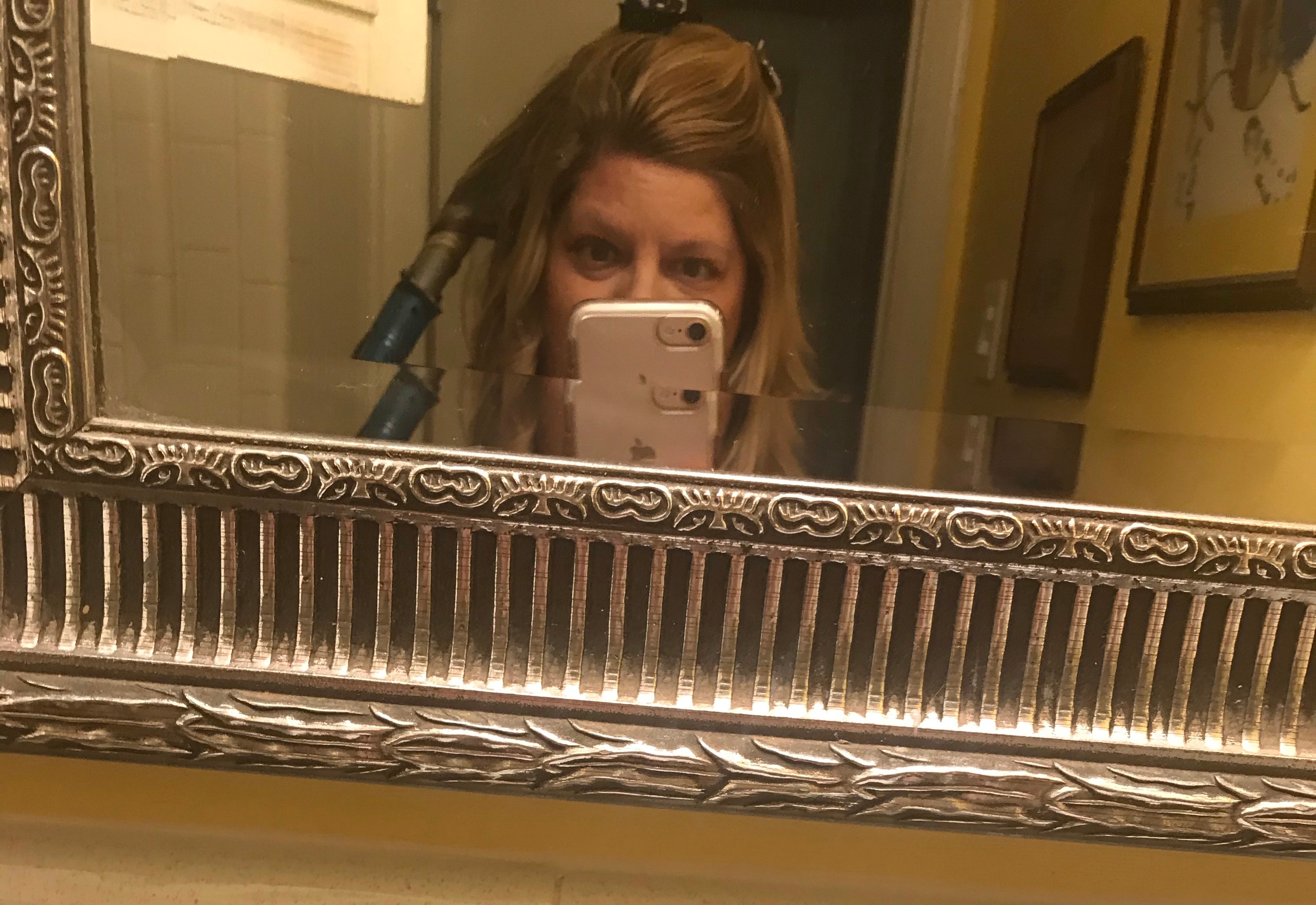 My hair is getting really long. Notice the white Amazon top from my post yesterday?