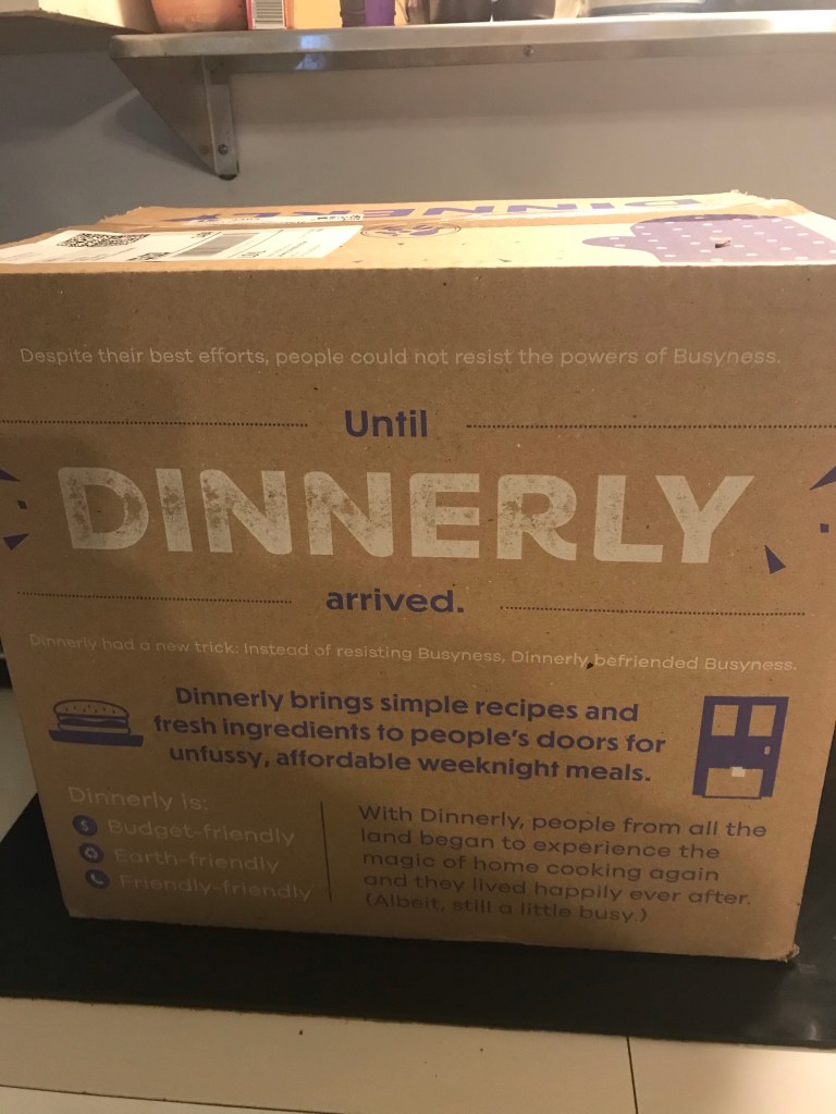 My Dinnerly box arrived but I had already decided to do BLTs for dinner. The Dinnerly box comes on Mondays any time between 8 a.m. and 9 p.m. This is the latest it has ever arrived because usually I have it by noon. This is everything from the box.