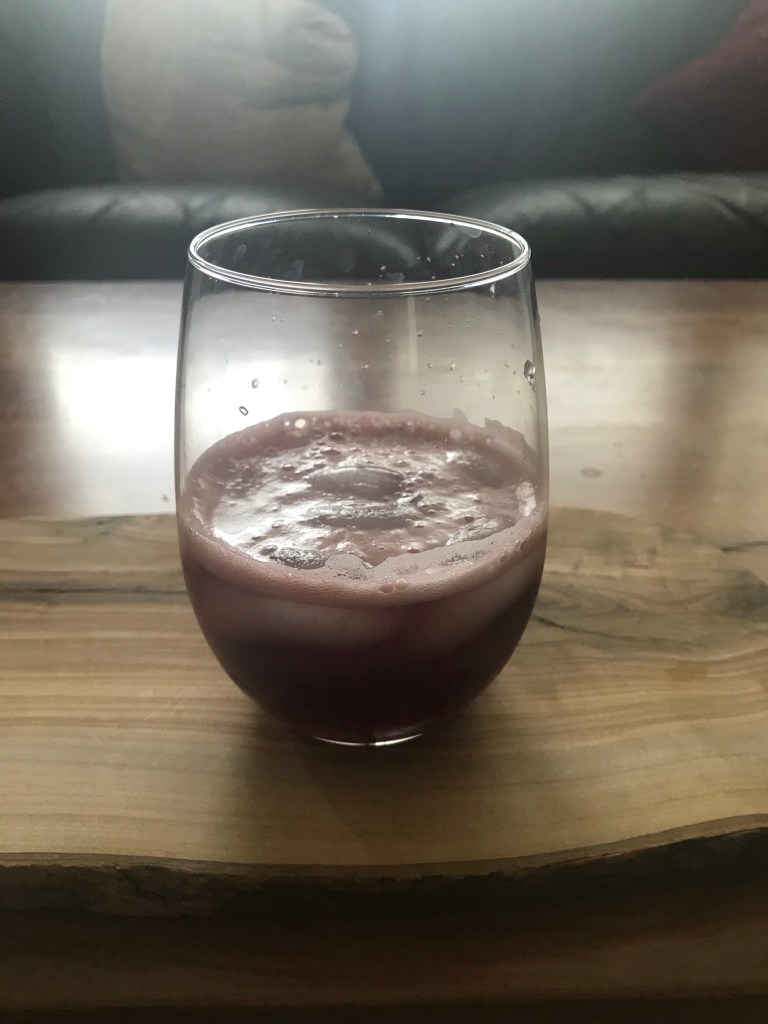 Simply pour about a half glass of red wine to a half glass of lemon lime soft drink or my favorite – I talk about it all the time – Fresca.