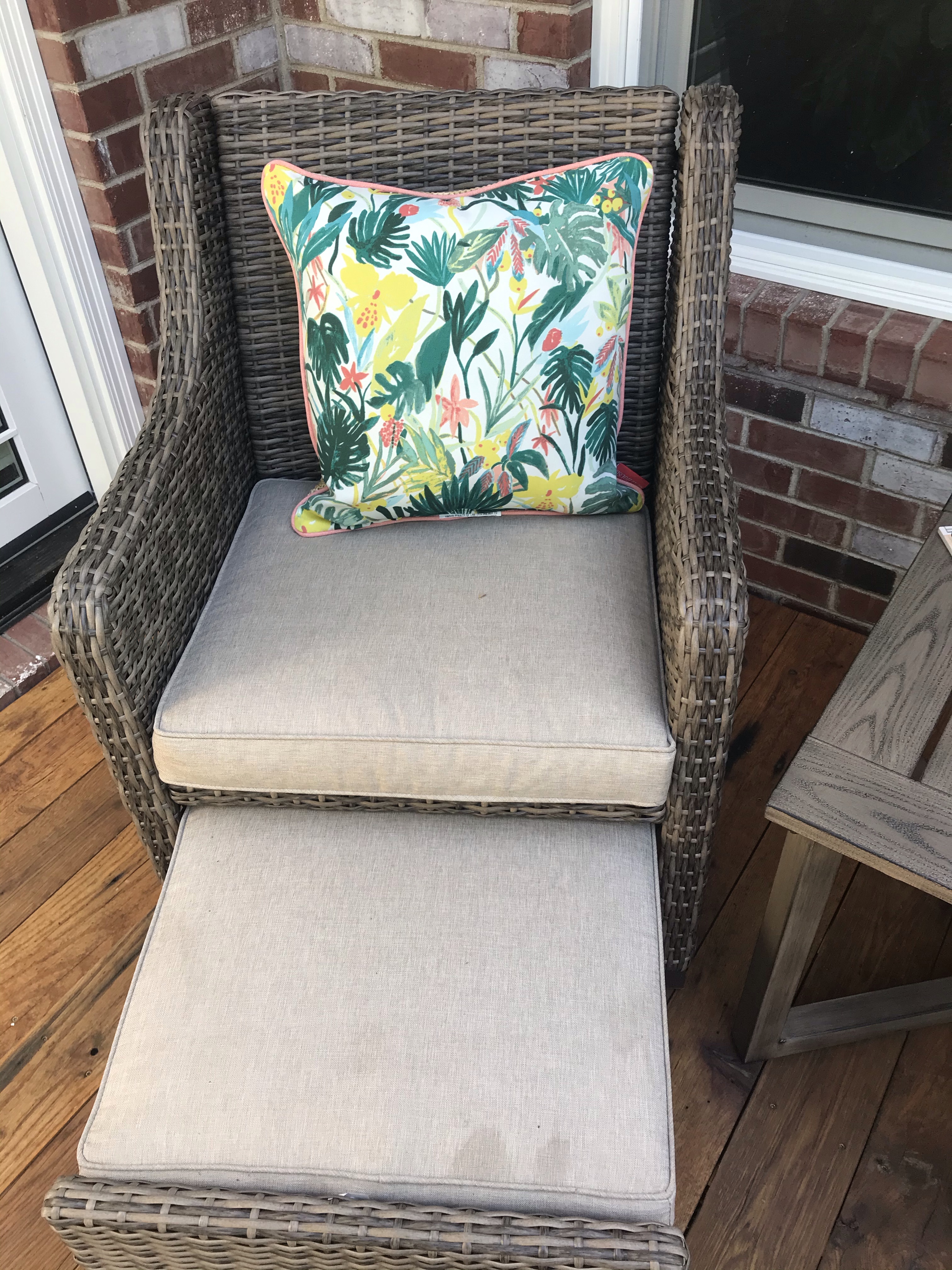 1. Thank you! A little creepy when they know where you live but oh well- I was really touched. I decided to go with tropical in all 3 areas of my outdoor space – can’t imagine getting tired of it! I won’t pay more than $25 for a pillow. Some are $50! And I don’t want a pillow cover I want the inside, too! Lol! Hope you find it! I need more but decided to wait til I find more that I love!